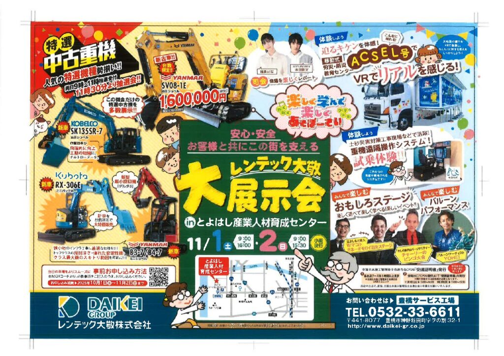 11月1日、2日に豊橋市人材育成センターにてレンテック大敬大展示会を開催します。
